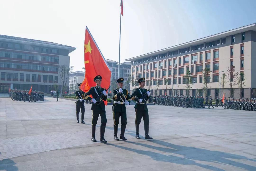 在庄严的升国旗仪式之后,汇报表演正式开始。在军旗带领下,在雄壮的《分列式进行曲》的伴奏中,2995名参训新生迈着整齐的步伐依次经过观礼台,同学们雄赳赳、气昂昂的阔步前进,他们眼神专注,挺拔的身姿,踏着整齐的步伐,喊着高亢洪亮的口号,依次接受检阅。他们以饱满的热情和最青春的风采展现着近半个月以来的训练成果,也彰显了理工2019级学生艰苦训练的意志和青春蓬勃的朝气。