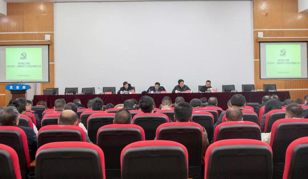 会议要求,全校上下要把学习中央、省委经济工作会议精神作为当前一项重要的政治任务,深入学习讨论,准确把握中央、省委省政府对我省经济形势的科学判断和重点任务,切实把思想行动统一到中央、省委省政府的决策部署上来,统一到中央经济工作会议和贵州省委经济会议精神上来,要切实做到“想明白、弄清楚、做到位”具体要求上来,把中央、省委省政府的决策部署转化为推进学校改革发展的实际行动,把中央、省委省政府提出的重点任务、重点要求转化为具体工作,坚持问题导向、目标导向、结果导向,深化和推进“一总支一项目”“一学院一产业”工程,凝聚共识、积蓄合力,干出成色,以实际行动书写好贵州理工学院新时代的奋进之笔。