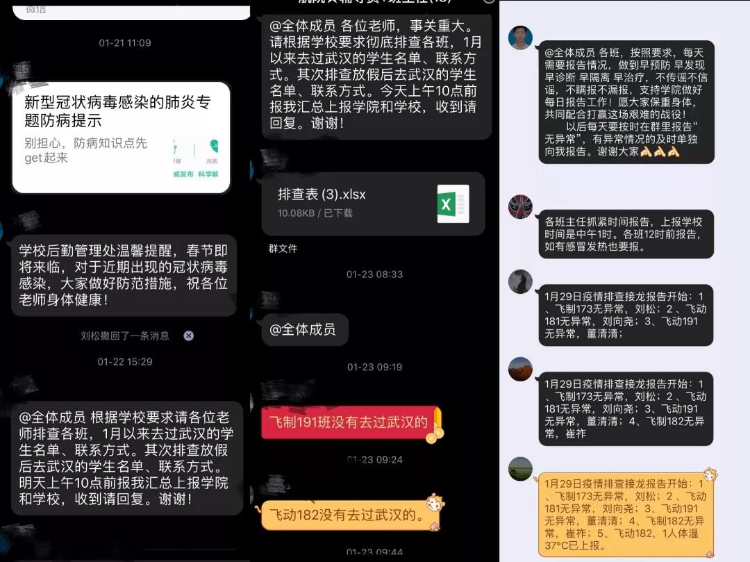 落实疫情信息报告机制,开展“全院填表、全员排查”,通过开展数据化筛查,精准掌握重点对象身份信息;严格日报告制度,动态掌握重点对象日常情况,及时收集全校所有人员每日健康状况;坚持“凡进必查”,进出人员进行身份核查、登记并进行体温测试;加强对师生的关注关心、跟踪了解,加强师生健康管理和思想政治工作,确保师生思想、情绪稳定。