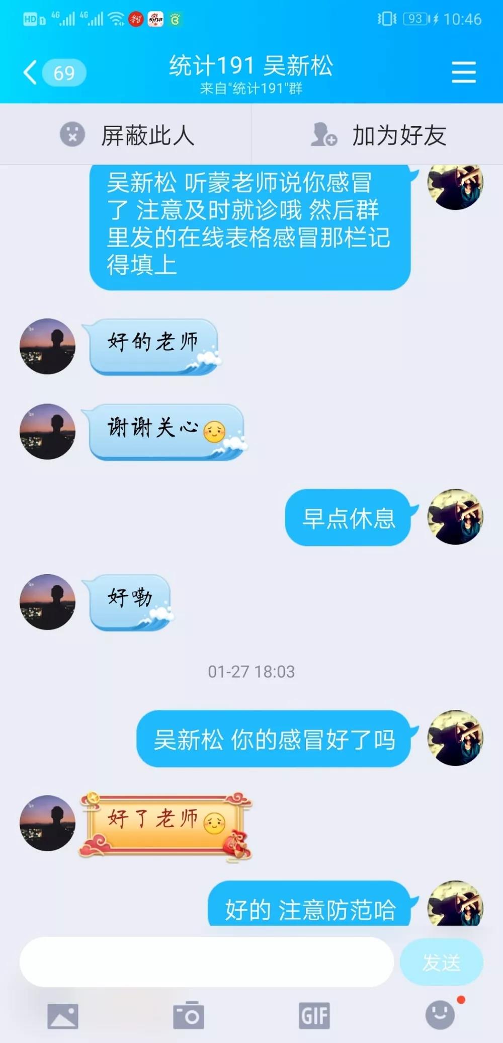 “今身体情况咋样,有没有感冒咳嗽”“假期不要乱跑,好好呆在家里就是为疫情防控出自己的一份力了”“不信谣,不传谣,注意个人卫生”等等,这些话从腊月二十九开始就成为了矿业工程学院年轻辅导员刘芳诚每天工作的一部分。自新冠疫情爆发以来,所负责班级和年级学生的身体状况、出行情况、有无密切接触史等信息成为了他最关心的事。对于有咳嗽发烧症状的学生,提醒其注意休息,有必要时及时就医;对于有出行信息的学生,告知其出行时注意自身卫生,到达目的地时要严格执行居家隔离;对于与湖北有密切接触的学生,安慰他们不要紧张,配合当地居委会做好体温检测,提高自身免疫力;针对外出打工的学生,除了告知其注意谨防上当受骗外,还会提醒他们注意劳逸结合;对于湖北籍的同学,除了本人的身体状况,其家人的身体状况也成为了他日常的牵挂,每天微信、QQ里同学们一句句的“无异常”成为了他心中的安慰剂。贵州山区众多,过年期间又逢雨雪,导致部分地区电网中断,还有部分学生出现手机遗失等情况,刘老师通过积极联系家长等方式了解到学生日常的基本状况。在这场疫情中,作为辅导员和班主任的刘老师认为,他更多扮演的是“大管家”角色,只有把学生的基本信息盘点好,才能规划,安排好学生的学习生活。