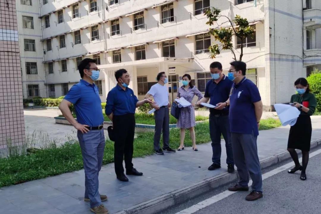 疫情防控领导小组实地检查走访蔡家关校区学生生活区及教学区封闭情况,现场听取了专项工作组在疫情期间学生返校后临时桥梁规划建设、上下寨学生学习生活区域封闭及学生返校后寝室封闭管理、膳食提供、教学准备等情况的汇报。