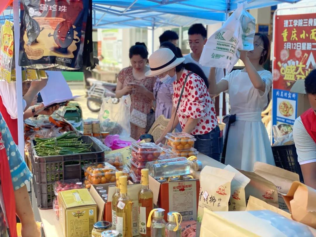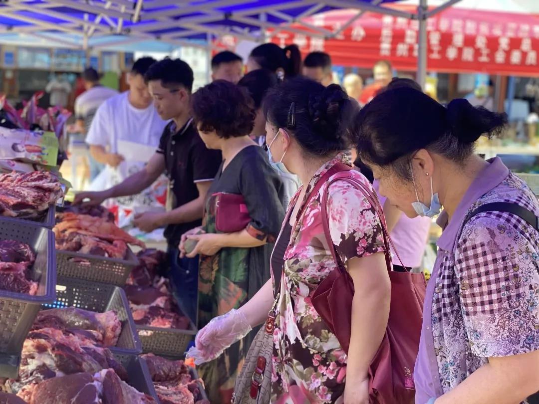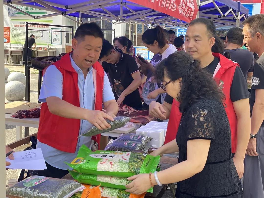 鱼稻米、新鲜肉类、鲜甜瓜果、蜂蜜干货等数百种商品琳琅满目,各个售卖档口人群络绎不绝,不少商品在短时间内售罄。“产销会的商品品种多样,价格合理,丰富了我们的菜篮子”正在选购中的教师纷纷说到。