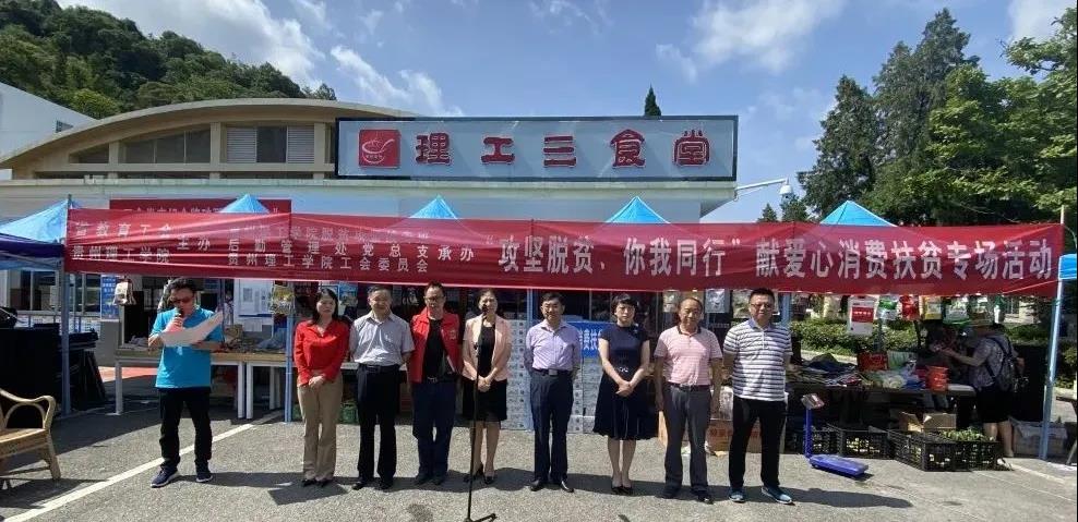 7月15日,由省教育工会、贵州理工学院主办,贵州理工学院脱贫攻坚暨农村产业技术革命工作专班、后勤管理处和工会以及德江县、沿河县和长顺县承办的消费扶贫农产品展销启动仪式在三食堂门口举行。省教育厅党组成员、省教育工会主席王慧,乐游棋牌曾羽、吴次南、胡兴灿、贺梦依、高勇,沿河县委副书记宋选文,德江县政府副县长张清霜,以及沿河县、德江县、长顺县和湄潭县相关负责人出席启动仪式。仪式由党委副书记高勇主持。