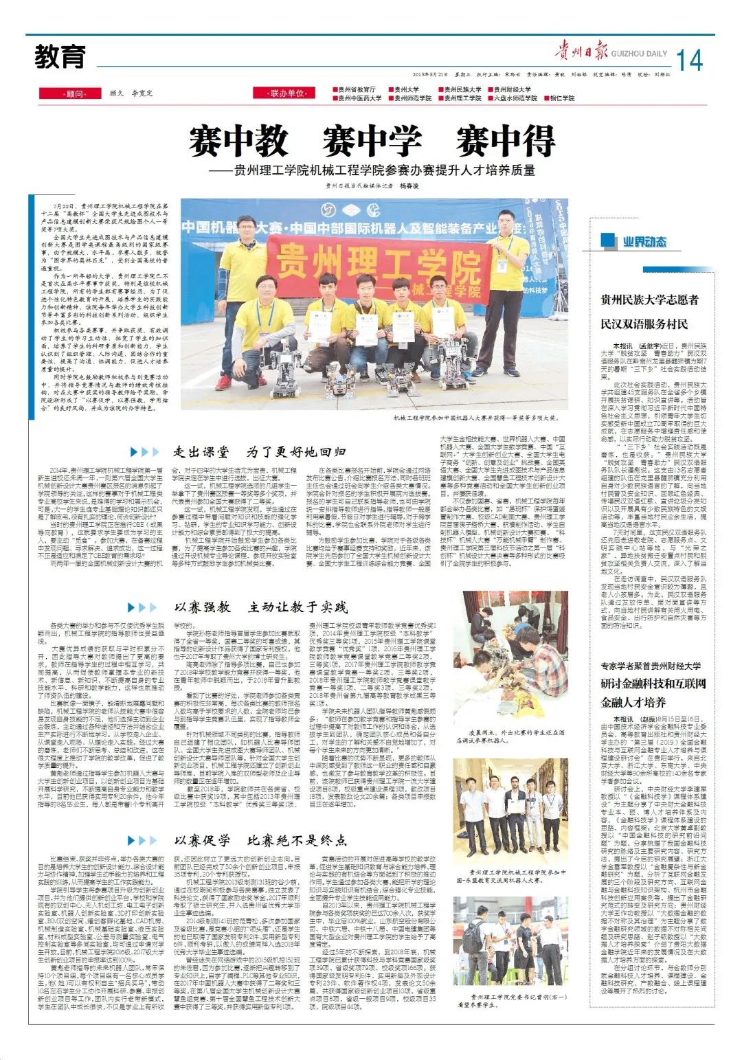 乐游棋牌8月21日,乐游棋牌对机械工程学院参赛办赛提升人才培养质量进行了整版报道