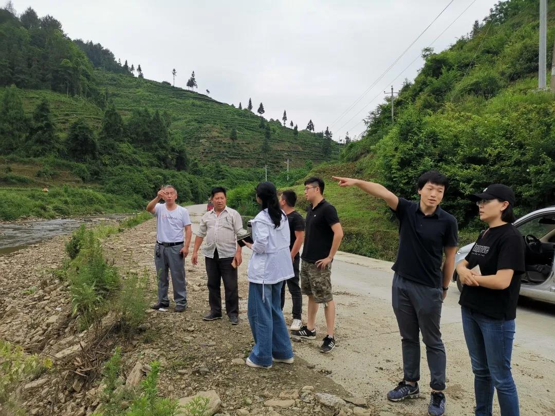 学院党总支乐游棋牌实施“一总支一项目”,帮助新金龙村修复被洪水损坏的灌溉水渠。图为学院一行实地查看水渠修复情况