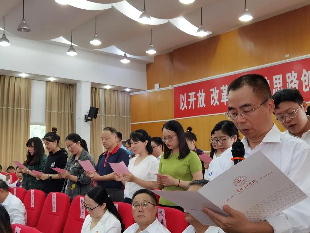 “我是一名光荣的人民教师,我庄严宣誓,忠诚党的教育事业,贯彻党的教育方针,履行教师神圣职责……为全体学生美好未来,我愿奉献全部智慧和力量!”新入职教师在贵州理工学院教学名师唐安江带领下,在全体参会人员的见证下庄严承诺。