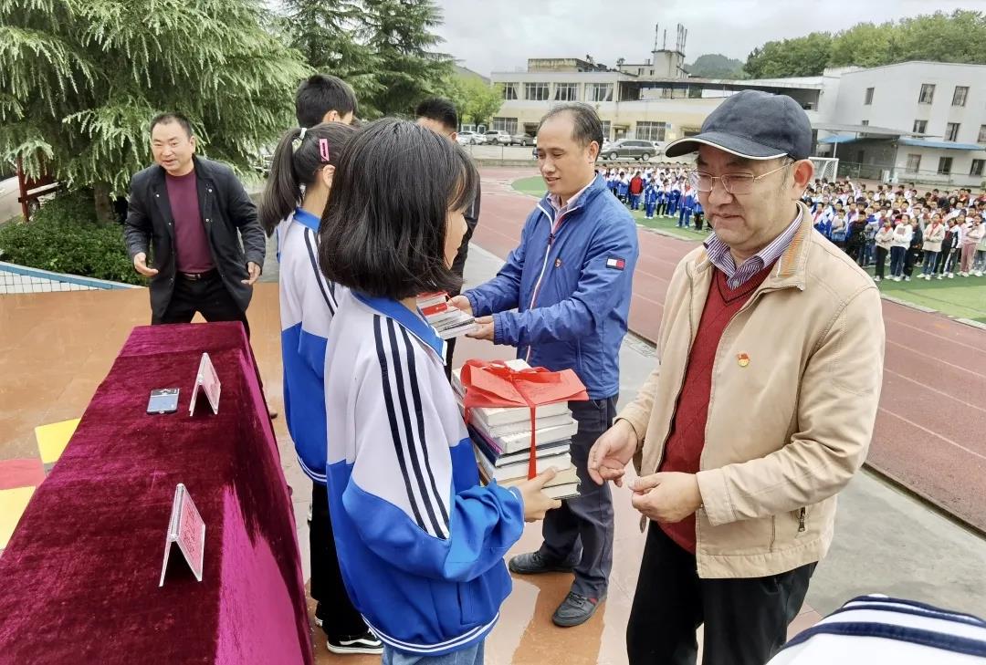 本网讯(江旭/图文)9月23日,校党委书记曾羽、副院长胡兴灿等一行五人赴复兴镇中学开展“情系教育扶贫·助力脱贫攻坚”——贵州理工学院向湄潭县复兴镇中小学、幼儿园捐赠图书活动。仪式在复兴镇中学举行。复兴镇中小学、幼儿园负责同志及师生代表参加了捐赠仪式。