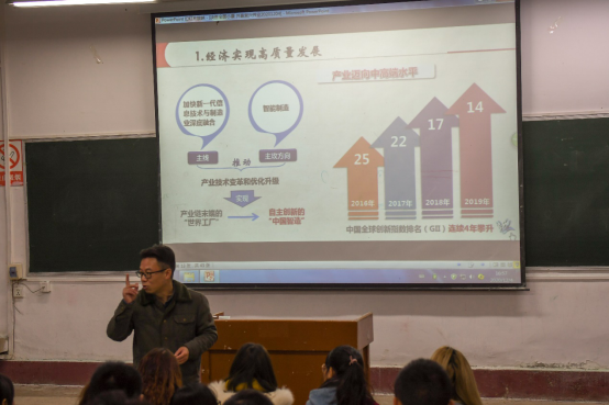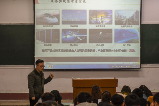 本网讯 12月4日下午,校党委副书记高勇以“决胜全面小康 共襄复兴伟业”为主题,在1111教室为2019级工管与交通专业学生讲授了一堂精彩的形势与政策课。