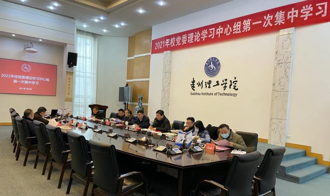 本网讯(党委宣传部 林春燕)为推动学习习近平新时代中国特色社会主义思想往深里走、往实里走、往心里走,为开好民主生活会打牢坚实思想基础。2021年1月6日下午,贵州理工学院在喀斯特会议厅召开2021年校党委理论学习中心组第一次集中学习会议。校党委委员曾羽、苏向东、吴次南、高勇、胡兴灿、贺梦依、林长松、张开智、左柏州、李朋出席会议,校直各部门、各教学教辅机构党政主要负责人参加了学习。会议由党委书记曾羽主持。