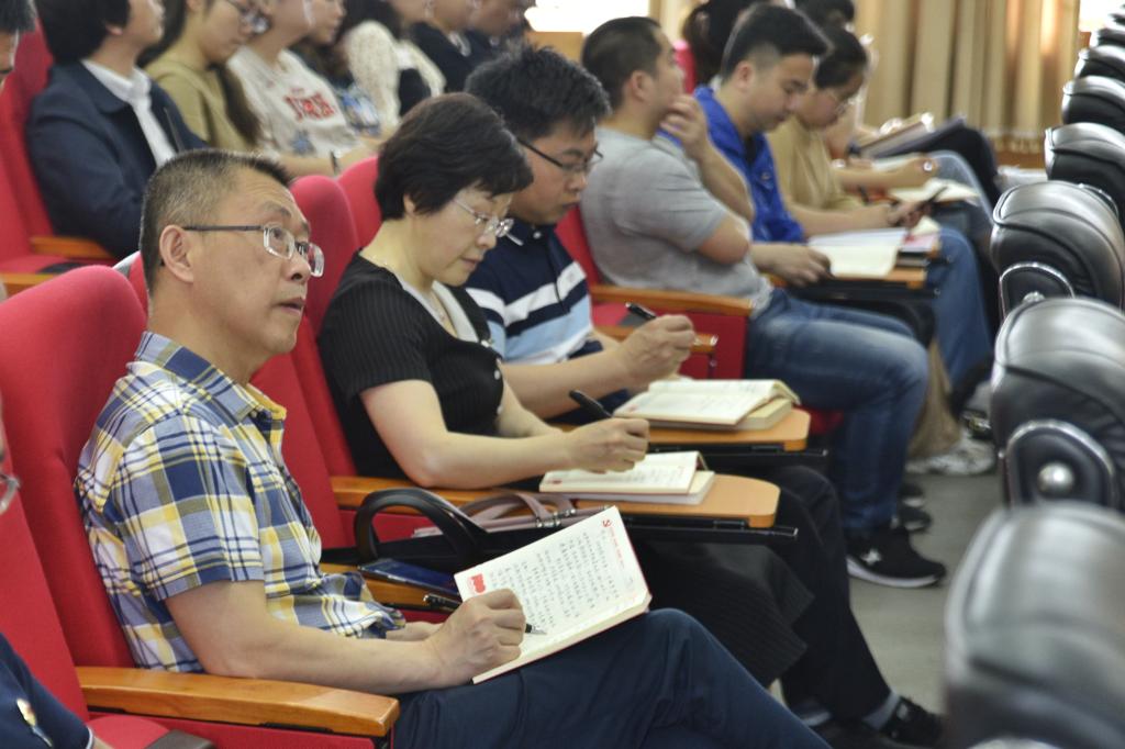 党委宣传部、党委统战部、党委学生工作部、保卫处、工会、团委全体成员;机械工程学院、体育学院师生党员代表;各党总支宣传委员,机关各支部宣传委员近100人聆听了报告。