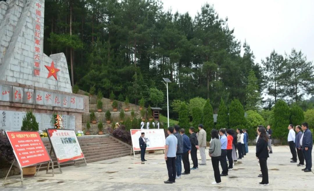 在困牛山红军壮举纪念碑前,校党委书记曾羽带领全体成员怀着无比敬仰的心情向红军烈士敬献花篮,整理挽联,集体默哀,并缓步瞻仰红军烈士纪念碑,对红军烈士致以沉痛的哀悼和崇高的敬意。