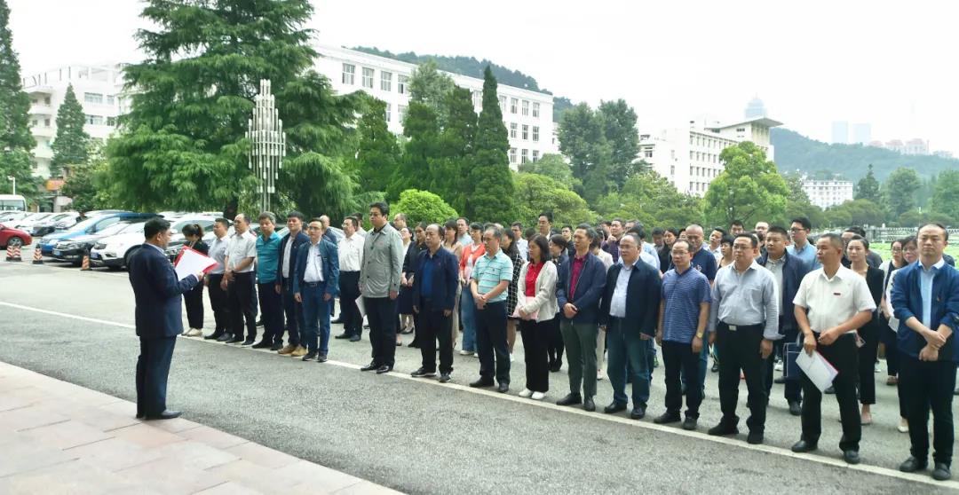 校长苏向东为科技处授“中国科技志愿服务”旗。他指出,习近平总书记在今年两院院士大会、中国科协第十次全国代表大会上发表重要讲话,强调把科技自立自强作为国家发展的战略支撑,立足新发展阶段、贯彻新发展理念、构建发展格局、推动高质量发展,面向世界科技前沿、面向经济主战场、面向高质量发展、面向人民生命健康,深入实施科教兴国战略、人才强国战略、创新驱动发展战略,把握大势、抢占先机,直面问题、迎难而上,完善国家创新体系,加快建设科技强国,实现高水平科技自立自强。强调科技管理部门要紧跟国家和贵州省科技体制改革的大形势和总要求,重点抓好完善评价制度等基础改革,科技攻关工作要坚持问题导向,要奔着服务地方经济社会发展最紧急、最紧迫的问题去。希望全校科技工作者,不忘初心,拼搏进取,创新争先,以良好的精神状态勇担新使命、砥砺新作为、建功新时代,为学校教育事业发展,为助力省委省政府奋力开创百姓富、生态美的多彩贵州新未来作出新的更大贡献。