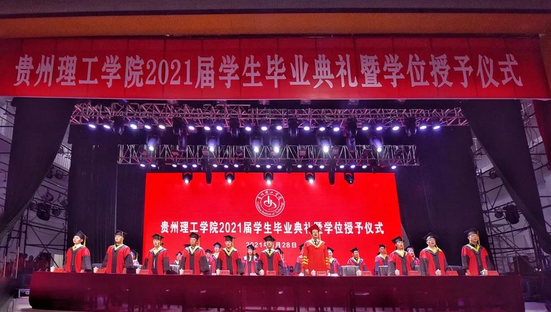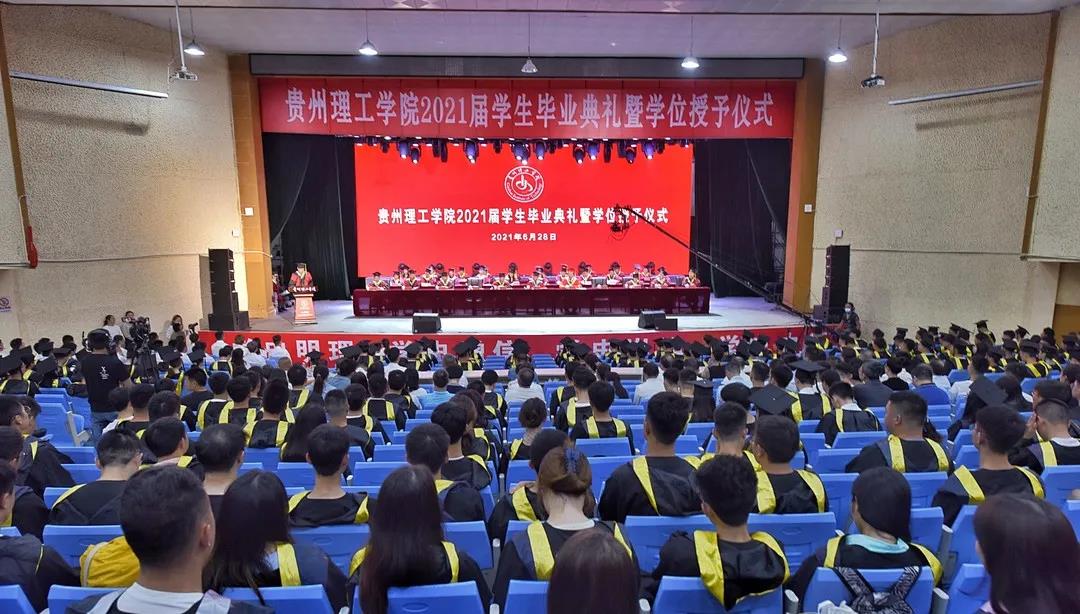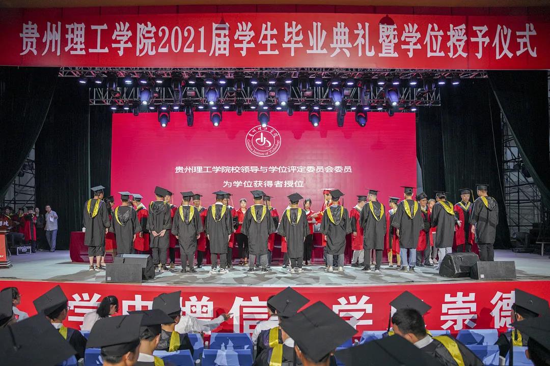 在建党百年华诞的历史时刻,6月28日上午9时30分,贵州理工学院2021届毕业典礼暨学士学位授予仪式隆重举行,毕业生们身着学士服,齐聚逸夫大礼堂,告别母校,告别老师,告别同学,聆听大学“最后一课”。