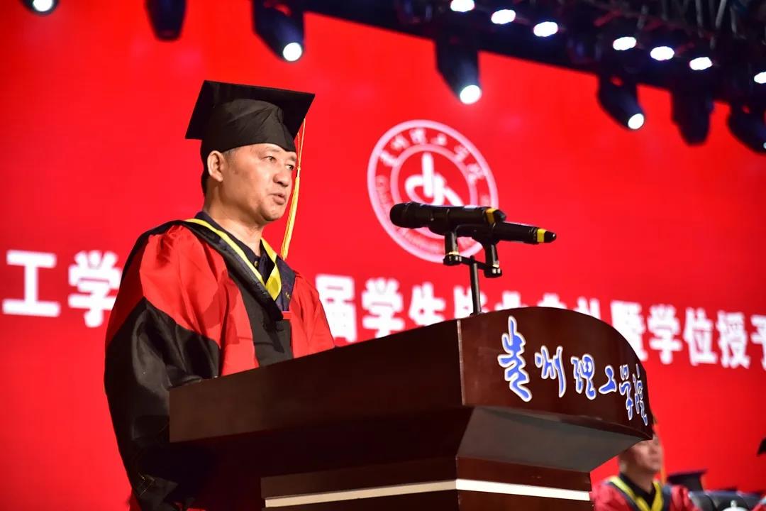 “新时代呼唤新担当,新担当呼唤新青年。当今世界处于百年未有之大变局,中华民族伟大复兴正处关键时期,广大青年都要珍惜‘时代新人’这个光荣身份,用情怀和担当,在学习和实践中,让青春的脉搏与时代的脉搏共振,探寻中国大地上的青春价值和人生答案。”苏向东谆谆教诲,句句寄语毕业生,要有理想信念、要有情怀担当、要执着而专注,希望毕业生立足于知识与实践的积累,怀揣精益担当的卓越工程师追求,执着而专注的向着青春梦想出发,服务于贵州“四化”建设。祝愿毕业生用青春诠释理工精神,用奋斗成就人生的精彩与幸福!”