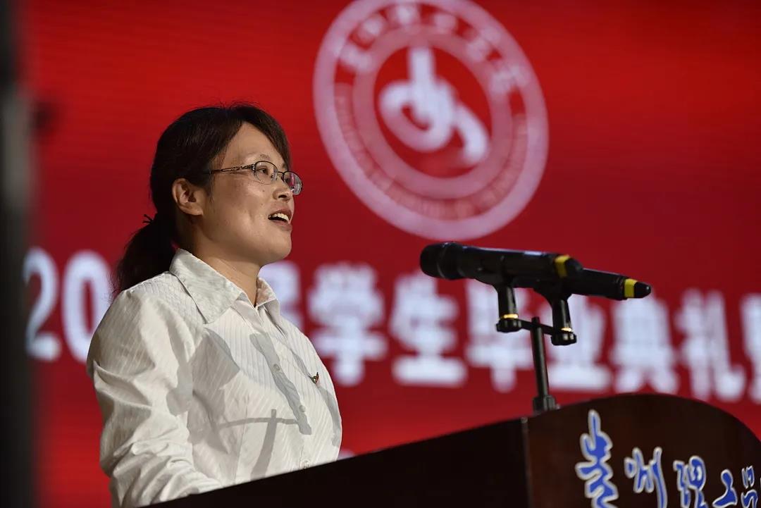 教师代表外国语学院的冯建平老师与毕业生“三个约定”,希望毕业生们在以后的人生道路上,能有“仰天大笑出门去,我辈岂是蓬蒿人”的傲骨,有“长风破浪会有时,直挂云帆济沧海”的气魄,更有“会当凌绝顶,一览众山小”的眼界。