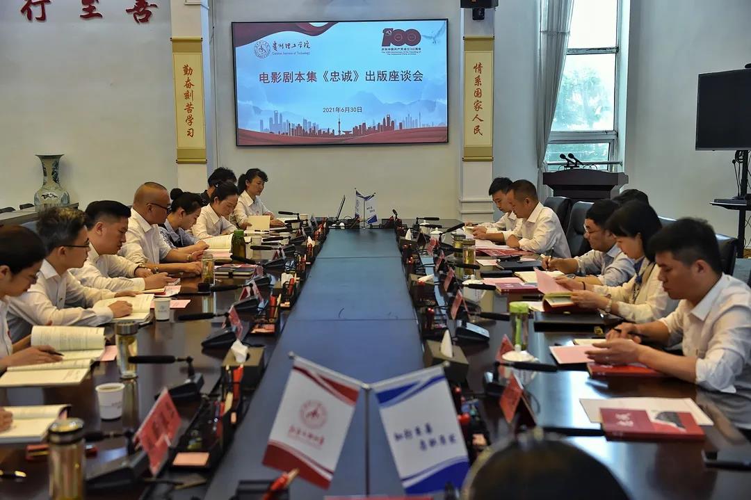 本网讯(科技处)为庆祝中国共产党成立100周年,用好红色资源,赓续红色血脉,6月30日,贵州理工学院举行庆祝建党100周年电影文学剧本集《忠诚》出版座谈会。校党委委员曾羽、高勇、贺梦依、林长松、李朋,校长助理莫立坡,著名编剧谢晓波以及相关部门负责人参加了座谈会,会议由副校长林长松主持。