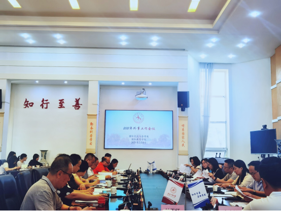 教务处、科技处、发展规划与对外合作处、人事处、教师工作处等部门负责人,各学院相关工作负责人,国际交流与合作处和国际教育学院全体人员参加了会议。