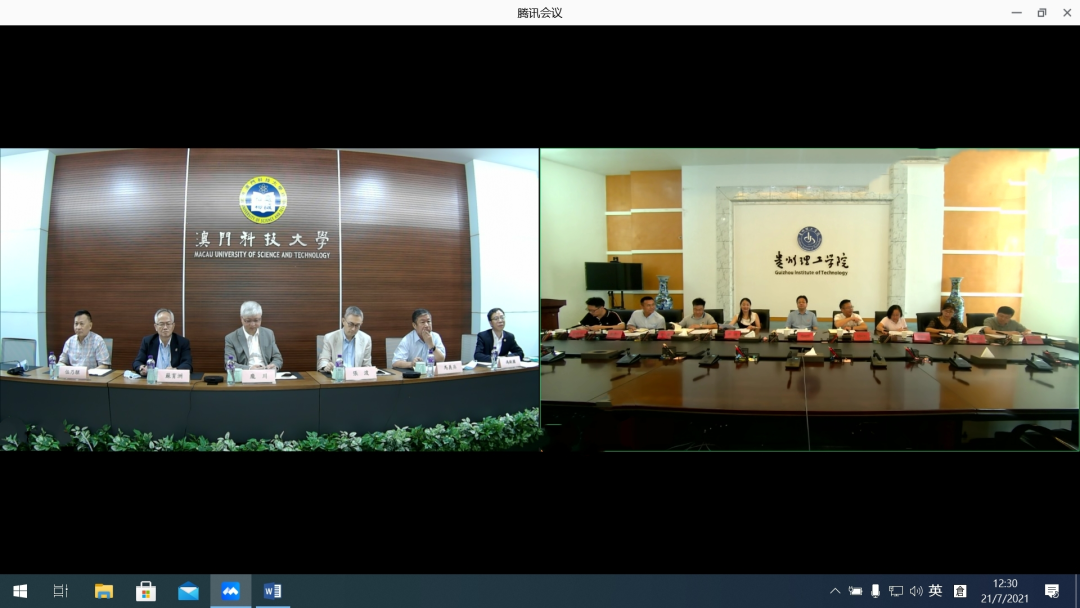 本网讯(国际交流与对外合作处 卢朦朦)7月21日上午,贵州理工学院与澳门科技大学就两校合作事宜召开线上会议,双方就研究生保荐项目、本科生交流学习、教师进修访学、科研合作进行了深入探讨。