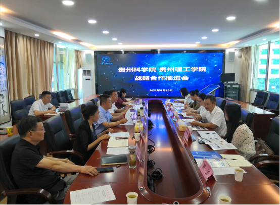 本网讯(发规处 覃引)为贯彻落实学校与贵州科学院合作工作推进会精神,进一步推进《贵州理工学院贵州科学院战略合作框架协议》事项落实落地,8月13日上午,副校长林长松带队赴贵州科学院开展合作对接工作,双方在贵州科学院机关十楼会议室召开战略合作推进会。贵州科学院党委常委、副院长、植物园党委书记王涛,院长助理任昂及组织人事处、科研管理处、科技产业处、科技创新发展处、植物园、山地资源研究所等部门负责人参加推进会。