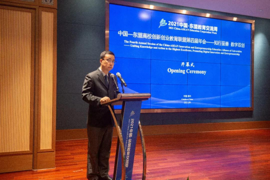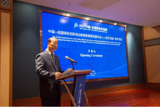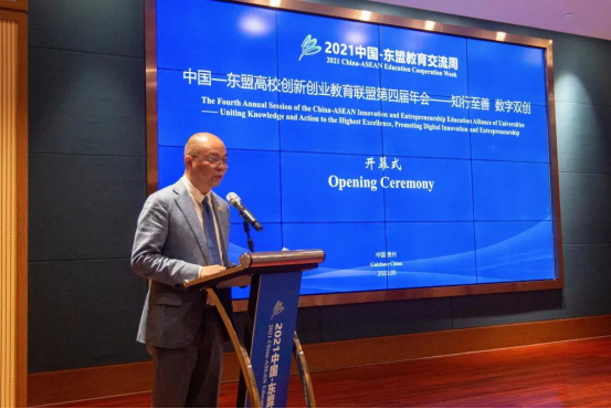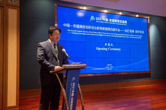 贵州省教育厅督学、省委教育工委委员王碧海在致辞中表示,近年来,贵州省大力支持高校开展创新创业教育,通过建设创业孵化基地、大学生创业园、大学科技园等平台,建立覆盖创业培训、创业引智、创业孵化、创业融资、创业大赛和创业服务的创新创业扶持体系,为高校毕业生搭建低成本、全方位、专业化的创新平台,并引导社会资本设立高校毕业生就业创业基金。希望中国-东盟高校间能够进一步深化交流合作,推动建立中国-东盟教育共同体、创新共同体,在更高水平上开展教育和人文交流合作,在更深层次上开展创新创业人才培养,在更宽领域服务数字经济时代之需。
