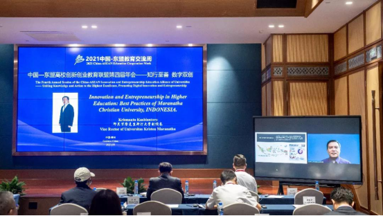 2021年9月24日,由贵州理工学院主办,中国高校创新创业教育联盟、中国—东盟高校创新创业教育联盟、江苏大学、成都大学、广西师范大学、合肥学院协办的2021中国-东盟教育交流周“中国-东盟高校创新创业教育联盟第四届年会”在中国-东盟教育交流周永久会址红枫厅举行。