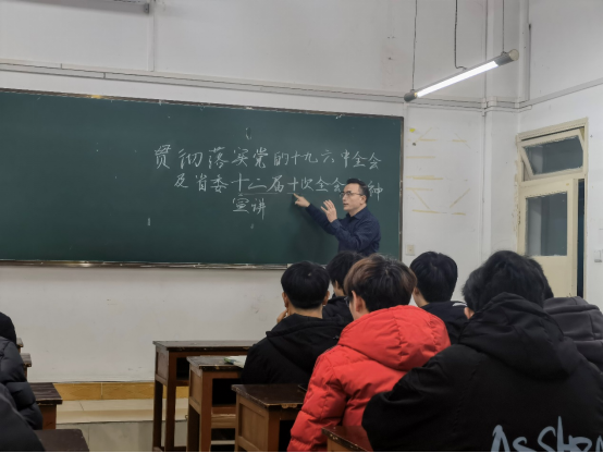 本网讯(矿业工程学院邓万成)2021年12月20日,副校长张开智为联系指导的矿业工程学院采矿工程专业2020级201班全体同学宣讲党的十九届六中全会及省委十二届十次全会精神。