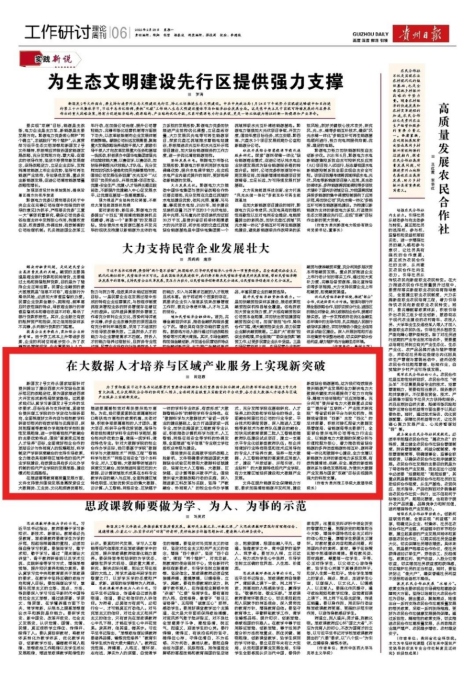 为了贯彻落实习近平总书记视察贵州重要讲话精神和系列重要指示批示精神,我们要牢牢抓住新国发2号文件重大机遇,充分发挥校企合作的协同育人特点,全面利用省级重点实验室的平台优势,奋力在大数据人才培养与区域产业服务上实现新突破。