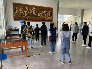 3月18日上午,师生们在医护人员及工作人员的引导下,佩戴口罩、依次排队、扫码、测温、登记、采样,整个过程工作人员认真负责,各部门配合默契,蔡家关、贵安两校区同时开展。截止下午5点,两校区师生666人以及后勤服务商人员454人完成核酸采集检测。