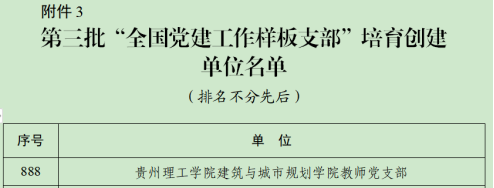 建筑与城市规划学院教师党支部入选“全国党建工作样板支部”培育创建单位。