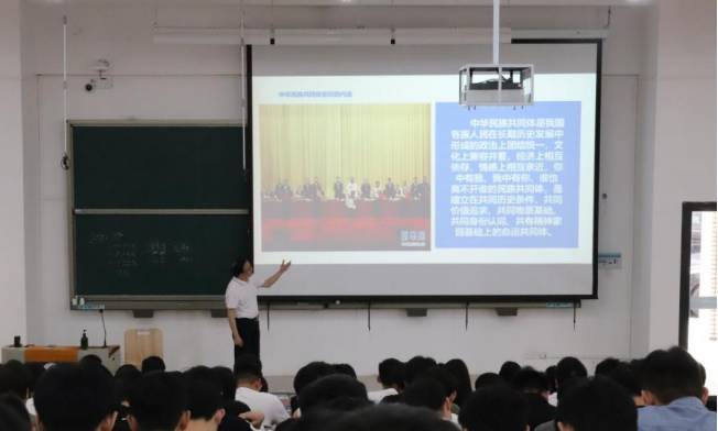 本网讯 为增强同学们民族团结意识,2022年5月31日下午,贵州理工学院副校长张开智面向大数据学院网络工程2020级同学,在贵安校区G1110教室以“铸牢中华民族共同体意识,共同绘就中华民族伟大复兴壮美画卷”为主题讲授思政课。