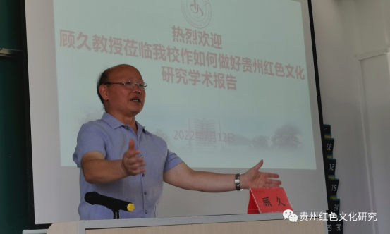 本网讯 为进一步做好贵州红色文化研究工作,努力利用贵州文化优势,充分挖掘区域红色文化资源,呈现红色文化的当代价值,提升文化自信,助力社会主义先进文化建设,提高乐游棋牌青年研究员的整体研究水平。7月12日,贵州红色文化研究中心特邀著名文化学者和国学专家顾久教授来乐游棋牌作专题学术报告,标志着贵州理工学院“贵州红色文化论坛”正式开坛。报告会由贵州红色文化研究中心主任曾羽教授主持。