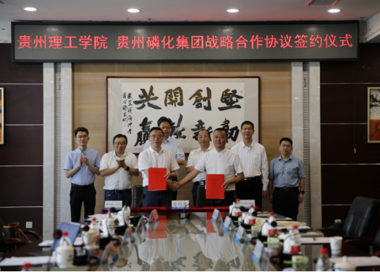 为深入推进贵州理工学院与行业领军企业的务实合作,7月20日下午,学校与贵州磷化集团有限责任公司的战略合作协议签署仪式在贵州磷化集团总部举行。贵州理工学院党委书记苏向东,党委副书记、校长潘良明,党委委员、副校长张开智;贵州磷化(集团)有限责任公司党委书记、董事长何光亮,党委副书记、总经理杨三可,副总经理李红林出席签约仪式。