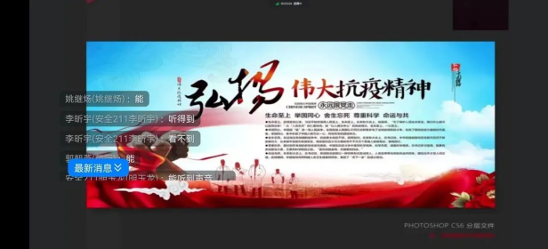 疫情当前,思政同行,“今天是本学期第一次线上马原课,这也是一次很好的把马克思主义立场、观点和方法转化成大学生科学地认识问题和解决问题的机会。疫情中,所有国人为抗疫大局做出了必要的牺牲,换来了整体上抗疫局面的可防和可控,这恰恰是我们的道路、理论、制度和文化的自信和优越性。相信在党和政府的坚强领导下,在我们所有师生员工的配合努力下,我们一定会战胜疫情,早日回到线下的课堂!”来自马克思主义学院的林乐兴老师在线上课堂上深情说道。