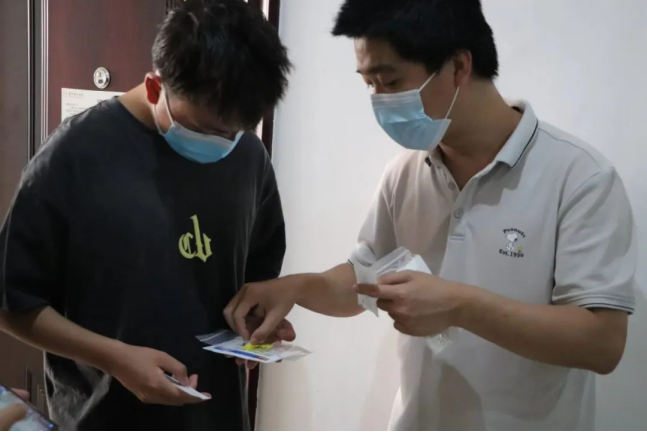 9月2日下午,天气逐渐转凉,贵安校区开始进行全员核酸检测。由于是第一次大规模采样,学生难免情绪有些紧张,核酸检测程序打不开、忘记扫描核酸检测码、带走核酸检测码……作为5号公寓核酸检测点负责人,李刚耐心引导学生有序排队,教学生如何使用核酸检测程序扫码,帮助医生找回被带走的核酸检测码……一直到晚上8点半,所负责点位的核酸检测工作才全部完成。