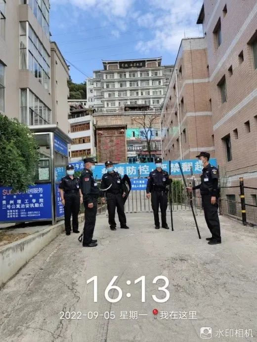 蔡家关校区,六名保卫干部驻守学校,实行保卫干部蹲点负责制,保卫干部和保安队长现场指导监督保安员履职尽责,严格贯彻执行学校疫情防控领导小组的工作指示要求。
