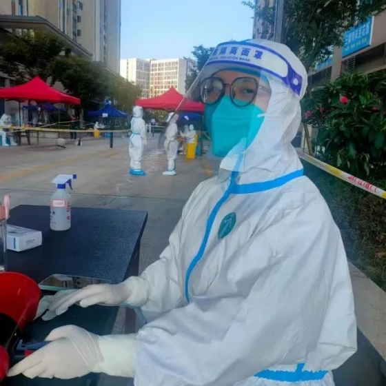 “每天天不亮,我们就要到社区开始准备核酸筛查的相关工作,然后开始深入社区各栋楼房开展摸排、登记各种信息,面对疫情,我只想尽自己最大的努力去帮助更多需要帮助的人”教学质量评估中心的教师魏节敏,谈及自己的志愿者工作时,除了疲倦更多的是自豪之情,在金华园社区恒大金阳新世界山临境小区,作为一名核酸检测志愿者,她参与475名小区居民的核酸检测登记核查工作,登记社区居民检测信息,核查完成核酸检测人员情况,分发家庭检测人员信息登记卡,登记不在本小区的业主情况等工作。