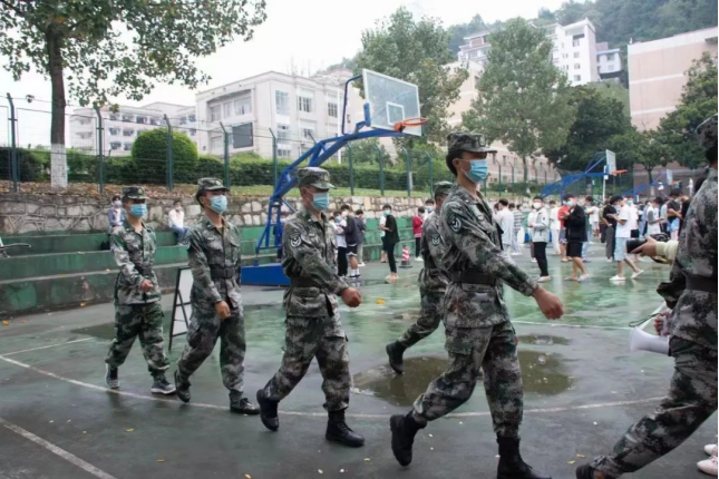 24名同学组成了这只退役军人志愿者队。其中,材料学院罗鸿伟同学刚从部队退伍返校,按照防疫规定解除隔离以后还没来得及办理入学手续,就投入到了紧张的防疫工作中,从军营到校园无缝衔接,没有一丝懈怠,真正体现了军人本色。在核酸现场,退役军人志愿者们正在耐心引导参加核酸检测的同学们。全员核酸采集是一个艰巨且重大的任务,这抹橄榄绿在现场坚守了长达5个小时,维护秩序、保障物资、指引通道,以平凡的身份在平凡的岗位上做着不平凡奉献,有效保障了采集任务的完成。