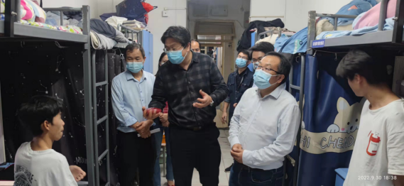 为切实做好2022年国庆节期间校园安全稳定工作,9月30日下午,校党委书记苏向东,校长潘良明,纪委书记、监察专员贺梦依、副校长林长松带领学校党政办公室、保卫工作部、实验室与设备管理处、后勤管理处等相关部门负责人开展国庆节前校园安全检查落实情况的督导工作。