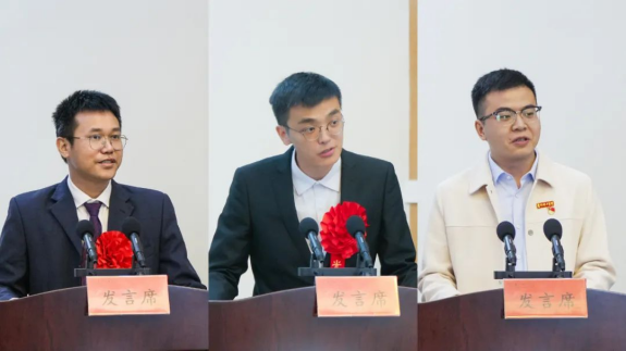 在2022年新进教师荣入仪式上,潘良明为新进教师逐一佩戴校徽,对他们加入学校大家庭表示诚挚欢迎,教学名师刘伟教授带领新进教师宣誓。新进教师代表韦超在会上作了发言。