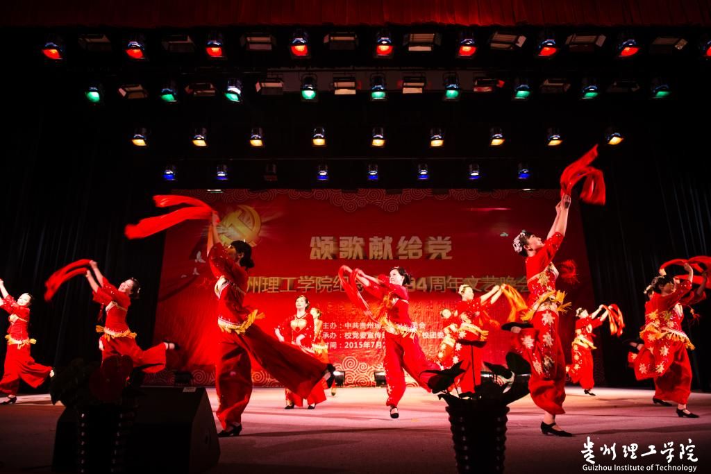 本网讯(宣传部 巫敏) 7月1日晚7时30分,在《天地喜洋洋》欢快的舞蹈中,经过精心策划、一个多月紧张排练的“颂歌献给党”贵州理工学院庆祝建党94周年文艺晚会在逸夫大礼 堂拉开帷幕。乐游棋牌曾羽、梁杰、蒙忠、宋广强、张波、王建平与1400余名师生一同观看了演出。