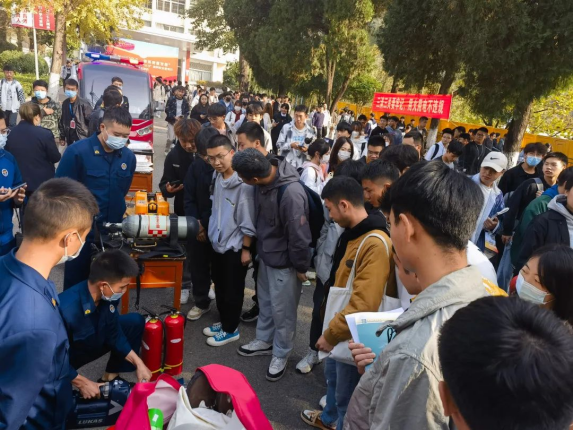本网讯 (党委保卫部/文 马国维/ 图)为全力打造平安校园,增强师生防火安全意识,普及消防安全知识,提高防火基本技能,认真履行消防安全责任,保障师生员工生命财产安全,本着预防为主、防消结合的原则。在2022年11月9日第31个全国消防安全日,学校党委保卫工作部(保卫处)联合云岩区金关街道办事处应急救援管理站、贵工路应急救援管理站、贵州卫民安消防知识普及中心分别在两校区开展主题为“抓消防安全,保高质量发展”“11.9消防安全月”教育宣传系列活动,本次消防宣传教育活动采取线上线下相结合的方式进行,内容涵盖消防知识教育宣传、消防安全演练、消防安全培训等。