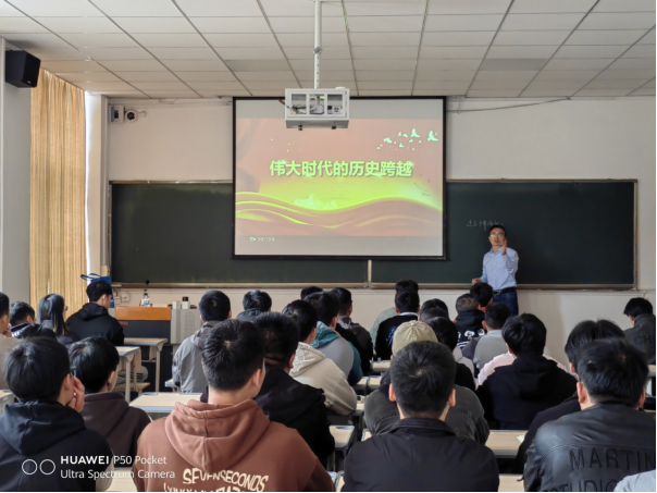 本网讯(马克思主义学院 孙雯)11月14日下午,副校长张开智以“伟大时代的历史跨越”为题,在蔡家关校区第二教学楼2213教室为学校矿业工程学院大四学子讲授了一堂生动、精彩的专题思政课。