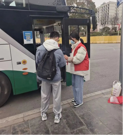 考虑到复杂的疫情形势,为避免与人员流动高峰期交织重叠,学校优化调整了教学安排,尊重学生意愿,按照“愿返可返、愿留可留”的原则,学生可自愿选择通过“线上”或“线下”方式完成学习任务。为确保离校返乡的同学安全顺利返家,学校租赁车辆“点对点”免费送返乡离校同学至贵阳北站和大学城环城快铁站,最大程度上为学生提供便利和安全保障。化学工程学院的周栋同学表示“这次集中送站服务让我们感到来自学校的关心和爱护,也让我感受到学校关心关爱服务学生的切实举措。天很冷但心很热,很感谢这次为我们服务的老师和同学”。