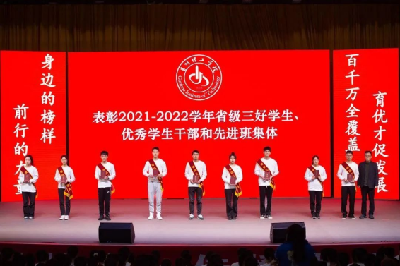 会上分别表彰了2021-2022学年国家奖学金获得者、国家励志奖学金获得者、省级三好学生、省级优秀学生干部、省级先进班集体、校级优秀学生奖学金获得者、单项奖学金获得者、校级三好学生、校级优秀学生干部、校级文体积极分子和先进班集体以及2021-2022学年学风建设校级先进集体、先进个人。