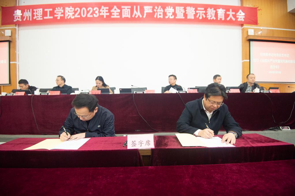 3月23日上午,贵州理工学院召开2023年全面从严治党暨警示教育大会。大会主要任务是:坚持以习近平新时代中国特色社会主义思想为指导,深入贯彻落实党的二十大关于全面从严治党战略部署,贯彻落实二十届中央纪委二次全会精神、十三届贵州省纪委二次全会精神,总结2022年工作,对2023年全面从严治党工作进行安排部署,科学分析全面从严治党新形势,面向新征程、部署新任务、开创新局面,坚定不移推动全面从严治党向纵深发展。乐游棋牌苏向东、胡兴灿、贺梦依、林长松、张开智,党委委员左柏州、李朋出席会议。