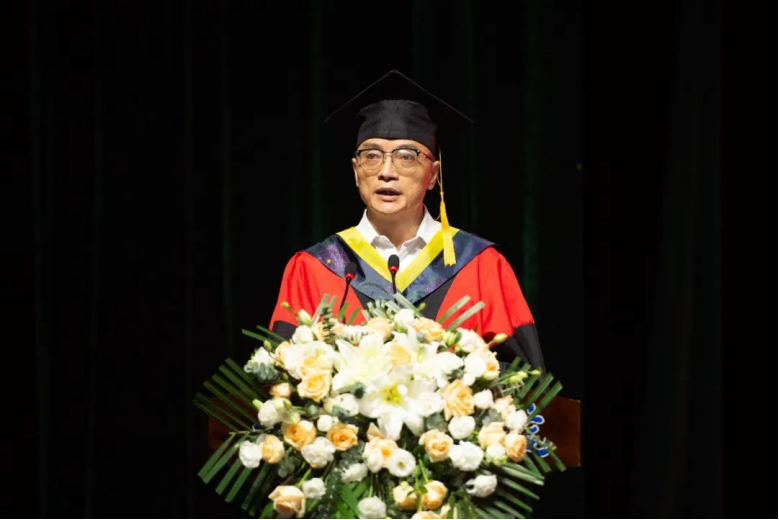 “每一段值得铭记的青春,始终是与祖国同向而行的青春,是挥洒汗水铸就的青春,是依靠学习走向未来的青春,是在平凡中孕育伟大的青春。”校长潘良明说。希望同学们以奋发之姿勇挑国家民族重任,与伟大的祖国一起奋斗、一起成长,为实现中华民族伟大复兴中国梦而不懈奋斗。希望同学们将“知行至善、厚积薄发”的校训精神内化于心、外化于行,坚守“追求卓越”的进取之心,将所学应用于实践,以“人一之、我十之,人十之、我百之”的奋斗姿态,在攀峰登高中奋勇前行,在攻坚克难中锤炼意志,在奋楫争先中成就自我。希望同学们在新的人生阶段,时刻增强知识更新的紧迫感,始终把学习作为立身做人的永恒主题,向他人学习、向世界学习,养成学贯中西的学识、胸怀天下的气魄、求真求善的质朴、善作善成的担当。希望同学们从“平凡”处起笔,投身社会的巨浪和时代的洪流中去,以平凡之心诠释坚守之志,在历史中留下“不平凡”的痕迹。